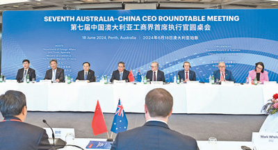 本报澳大利亚珀斯6月18日电 (记者王迪)当地时间6月18日上午,国务院总理李强在珀斯同澳大利亚总理阿尔巴尼斯共同出席第七届中澳工商界首席执行官圆桌会并致辞。约30位中澳商会和企业负责人出席。