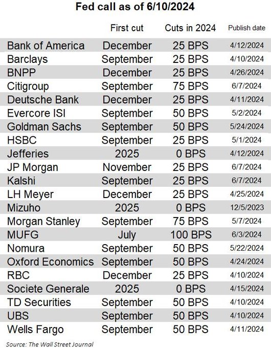 以下是Nick Timiraos统计的华尔街各大行对今晚CPI数据的预测分布:
