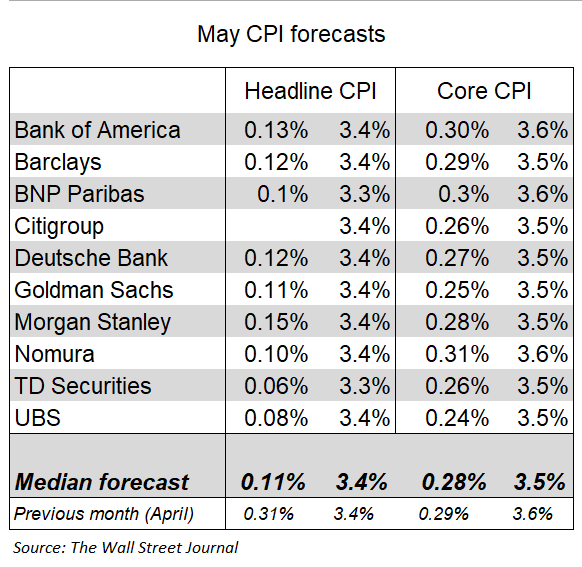 根据媒体对经济学家的调查预估显示,美国5月整体CPI同比涨幅预计仍将维持在3.4%。不过,环比数据或有望传来利好——预计上个月CPI环比涨幅将仅为0.1%,较4月份0.3%的环比涨幅明显回落。若最终数据能符合预期,这也将是自2023年10月以来最小的CPI环比涨幅。