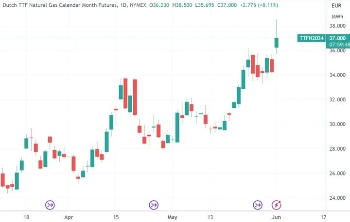 (TTF天然气期货近月合约日线图,来源:TradingView)