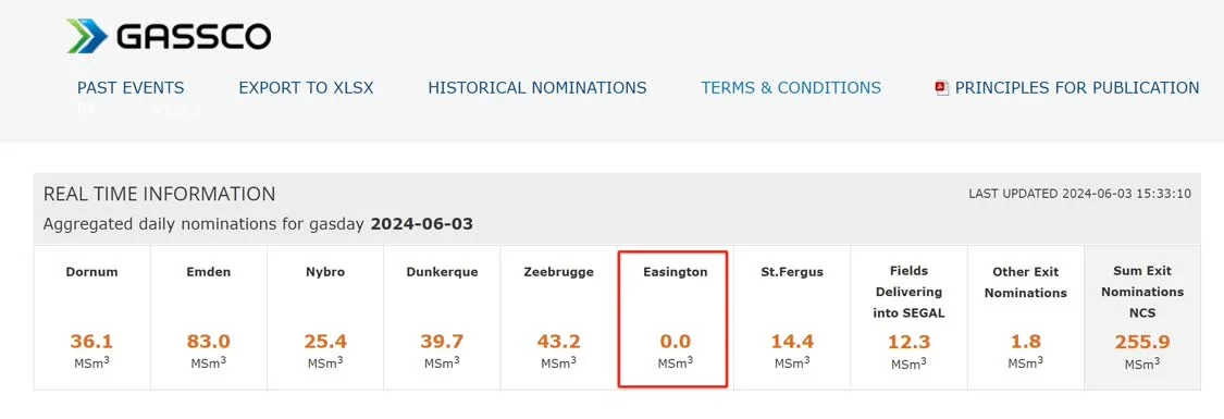 根据公开资料,Nyhamna工厂每天能处理最高7980万立方米的天然气,对应英国Easington终端的处理能力为至多7250万立方米。汉森表示,周一的停产实际导致的产能损失为5670万立方米。而根据官网资料,两家工厂的停产还会继续影响到周二。