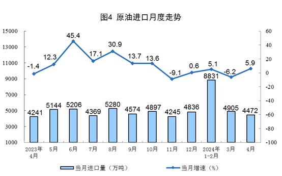 进口数据来源于海关总署,其中2024年4月份数据为快讯数据。