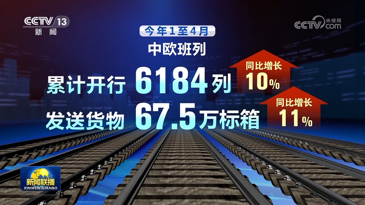 国铁集团最新数据显示,今年1—4月,中欧班列累计开行6184列,发送货物67.5万标箱,同比分别增长10%、11%,涨幅较一季度继续扩大。