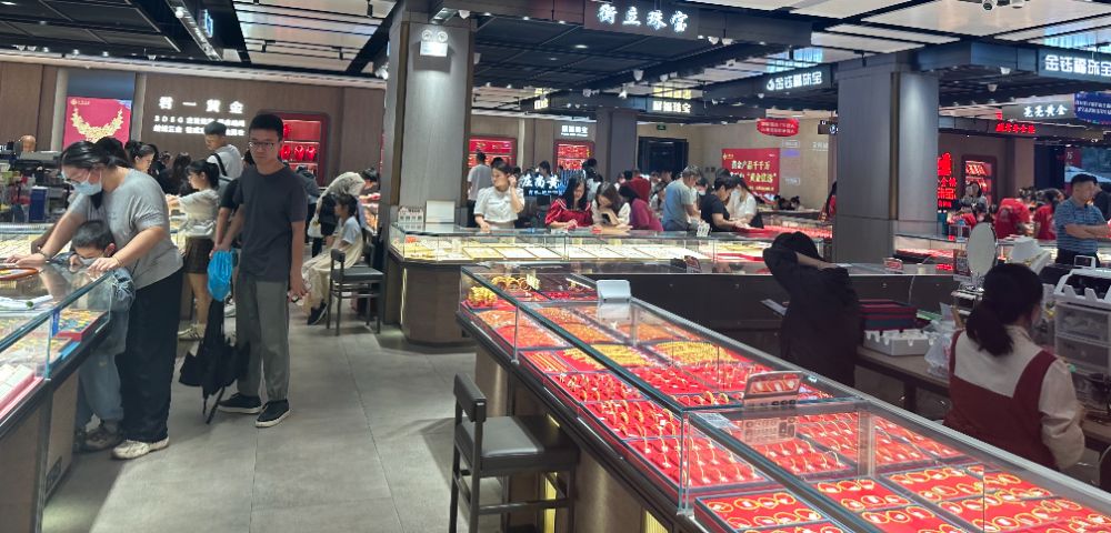 在社交媒体上搜索“黄金”,“深圳水贝”跃然词条前列。水贝作为全国最大的黄金珠宝交易集散地,其低于市面价格的金价吸引了众多外地游客前来挑选。