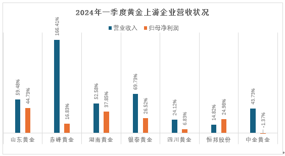 这一轮金价上涨的赢家还有黄金上游产业链的“掘金者”。多家主营黄金开采、冶炼业务的企业一季度财报披露,其归母净利润涨幅喜人。我国黄金产业链上游的头部企业山东黄金、湖南黄金、银泰黄金等企业归母净利润增幅超5成,赤峰黄金归母净利润暴涨166.41%。