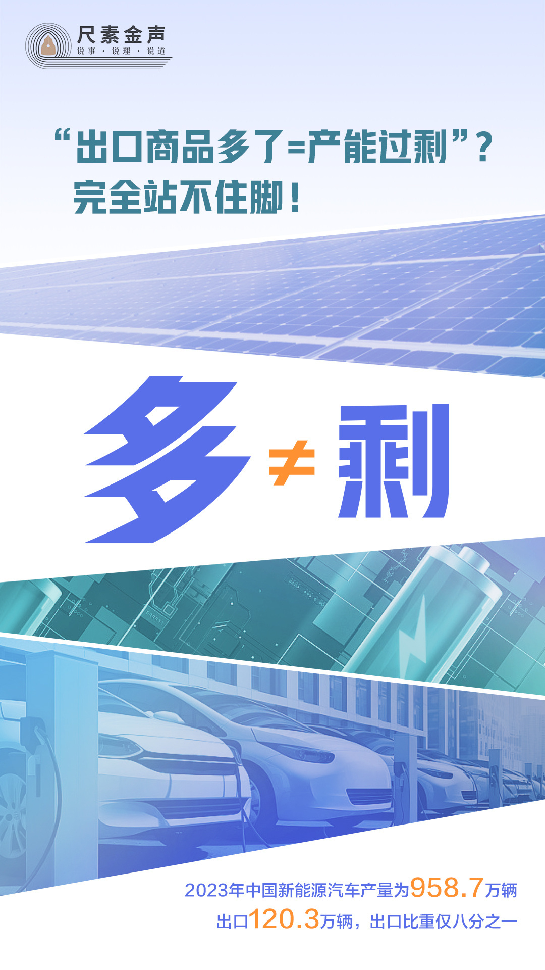 新能源汽车、锂电池、光伏产品,去年中国的“新三样”产品出口额首破万亿元大关,增长近30%。不少国际经济界人士为中国坚定推动绿色转型点赞。然而,美方一些人竟给中国新能源产业贴上了“产能过剩”的标签,说“出口商品多了就是产能过剩”“中国的产能大大超过了中国国内的需求,也超过了全球市场的承受能力”。