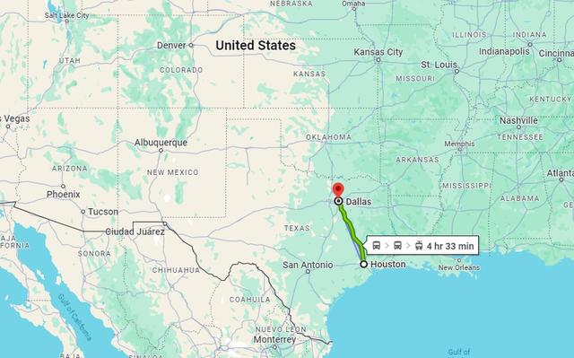 目前乘铁路从休斯顿到达拉斯需4个半小时