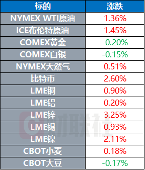 WTI原油期货结算价涨1.36%,报86.59美元/桶;布伦特原油期货结算价涨1.45%,报90.65美元/桶。