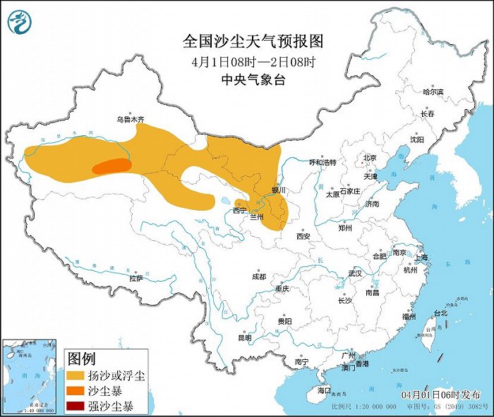 受冷空气大风影响,预计4月1日08时至2日08时,新疆南部和东部、内蒙古西部、青海西北部和东部、甘肃中北部、宁夏中南部等地的部分地区有扬沙或浮尘天气,其中,新疆南部局部有沙尘暴。
