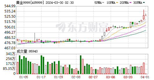 3月29日,基础金价再度爆发,上海黄金交易所AU9999盘中上触538元/克。多家国内黄金品牌报价“水涨船高”,周大福、中国黄金等金店的金饰价格达686元/克。