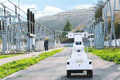 近年来,南方电网铜仁供电局围绕完善电网结构,积极探索智能化技术应用,不断提高设备运维能力,为地方经济社会高质量发展注入强劲电能。图为在贵州省铜仁市沿河土家族自治县220千伏青山变电站,工作人员用智能机器人巡视变电设备。