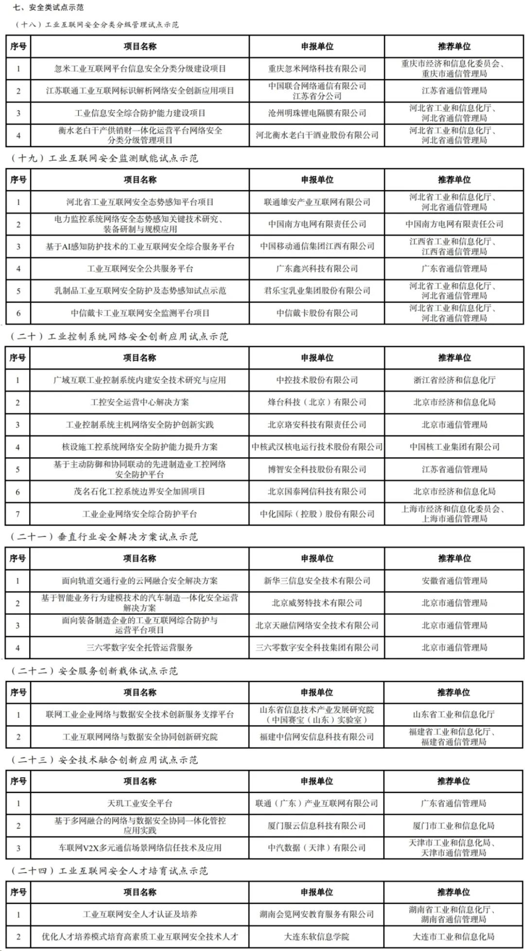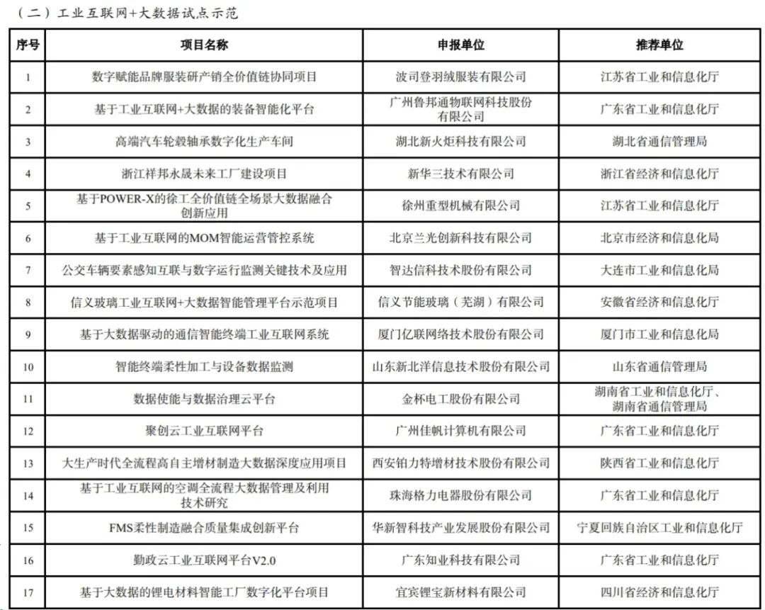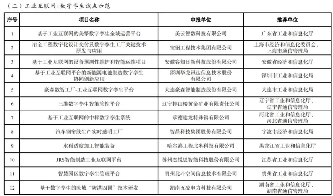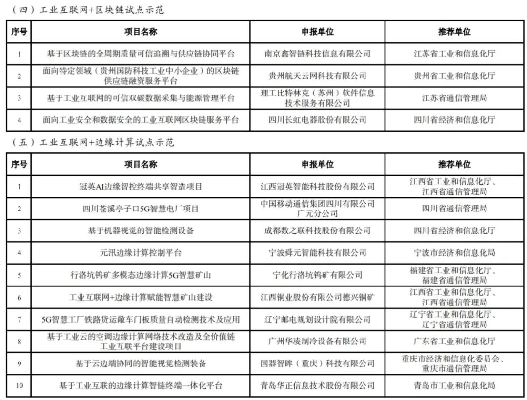 根据《工业和信息化部办公厅关于组织开展2023年工业互联网试点示范项目申报工作的通知》(工信厅信管函〔2023〕319号)要求,经企业自主申报、地方推荐、专家评审和网上公示,确定了2023年工业互联网试点示范项目名单,现予以公布。