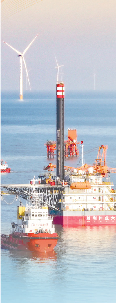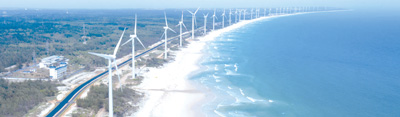 为满足海南自贸港高质量发展电力需求,有效推进大规模新能源电力消纳,海南500千伏主网架工程正在抓紧建设。图为海南省文昌市木兰湾沿海的风力发电机。孙海天 郑喆/摄影报道