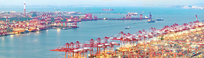 山东青岛港灯火辉煌,一派繁忙。韩加君/摄