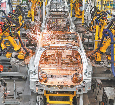 江苏常州理想汽车智能制造基地总装车间,机械臂正进行焊接作业。新华社记者 季春鹏/摄