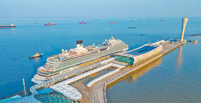 1月1日,上海吴淞口国际邮轮港,国产首艘大型邮轮开启商业首航。王初/摄(影像中国)