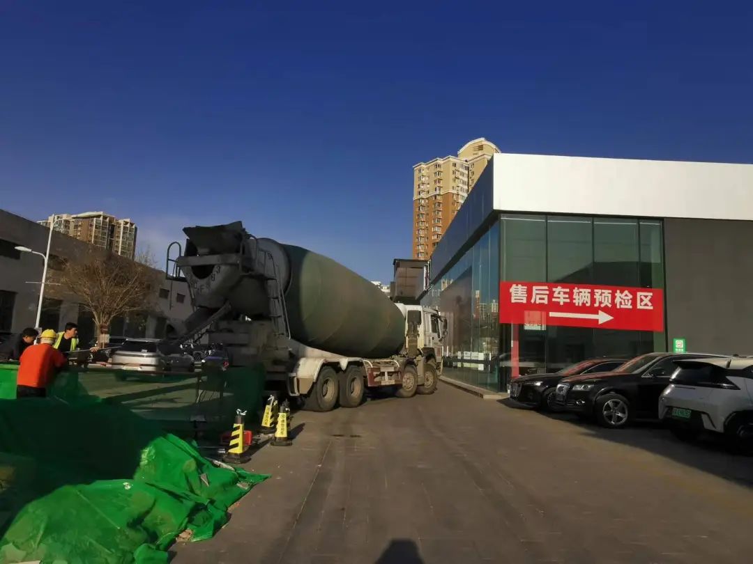 门口轰隆隆的混凝土搅拌车,在工人的指挥下,正向着地面搭好的方形钢筋框架内浇灌水泥,门店内装修工人则各自忙碌着手头的活计。这是日前《每日经济新闻》记者实地走访位于北京市朝阳区花虎沟的祥龙博瑞汽车园区内小米汽车2S店时,看到的最新建设进展。