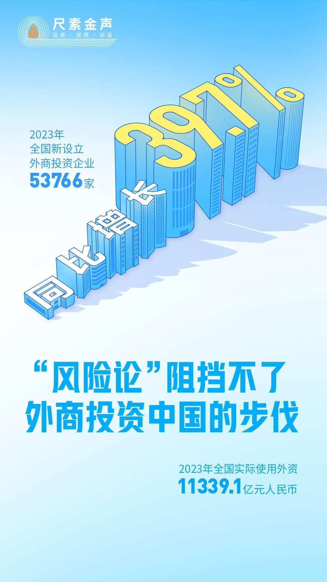 事实证明,任何抹黑误导都阻挡不了外商来华投资步伐,中国制造展现出的强大韧性、活力和潜力,不会因花样翻新的“唱衰”论调而改变。2023年,全国实际使用外资金额11339.1亿元人民币,仍处历史高位;全国新设立外商投资企业53766家,同比增长39.7%。中国一直都是外商投资兴业的沃土。