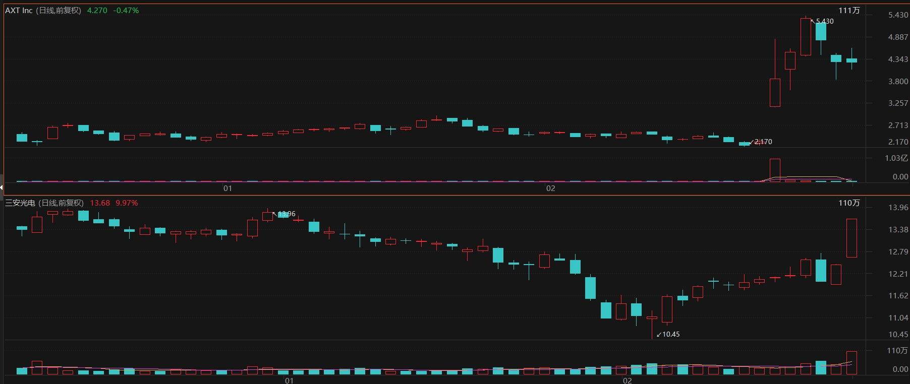 A股市场方面,致力于磷化铟等半导体新材料与器件研发、生产与应用的三安光电周五收盘涨停。