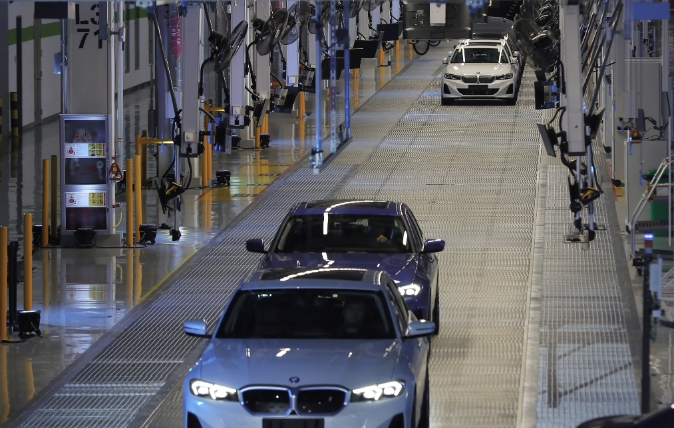 沈阳铁西工厂里达厂区开业仪式上拍摄的全新BMW i3汽车 图片来源: 新华社记者 杨青 摄
