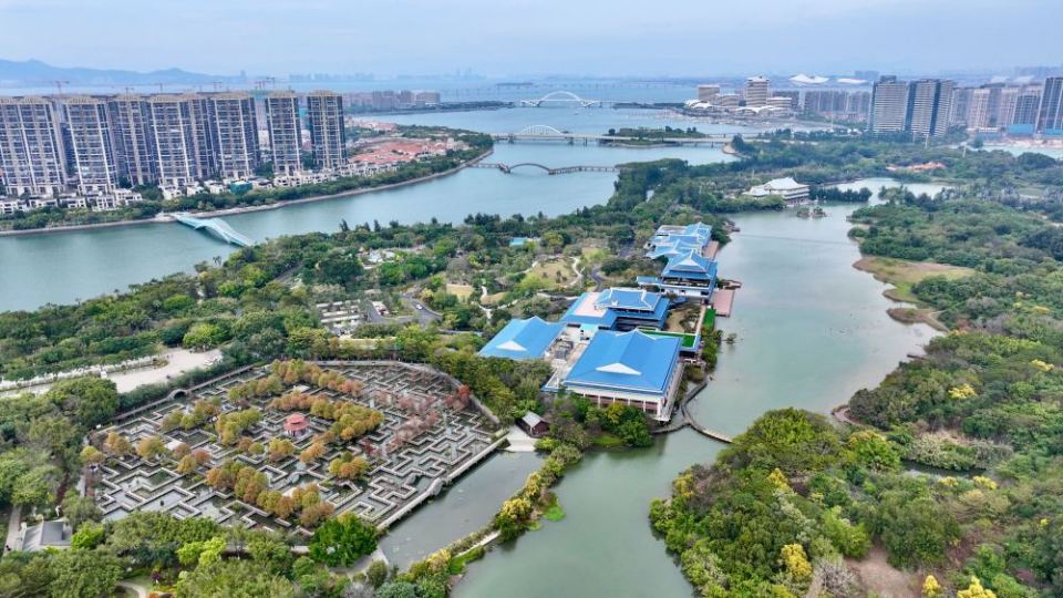 2024年1月24日拍摄的厦门马銮湾生态三岛公园(无人机照片)。新华社记者 林善传/摄