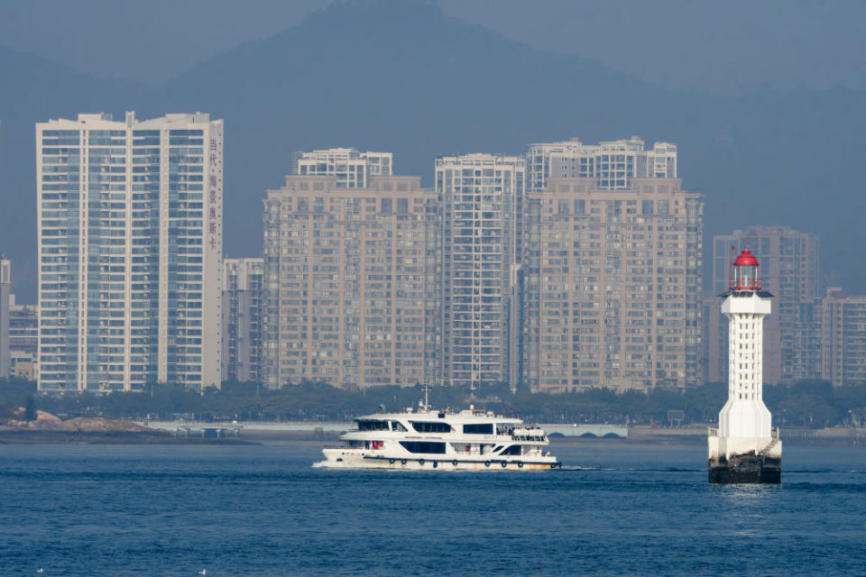 2024年1月5日,一艘游轮在厦门海湾公园附近的海面上穿行。新华社记者 魏培全/摄