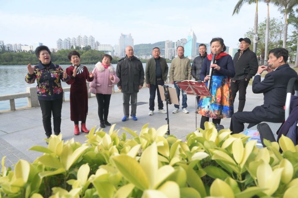 2024年1月24日,市民在位于厦门筼筜湖边的南湖公园开展娱乐活动。新华社记者 林善传/摄