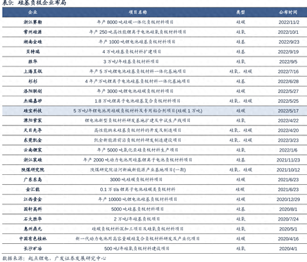 除技术投入外,上述行业研究人员认为,硅基负极厂商若想获得更多市场份额,还需依靠产能落地。