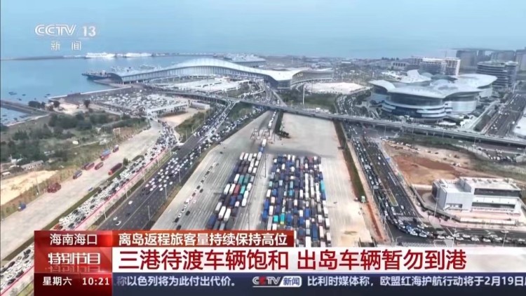 在17日的新闻发布会上,海口市政府副秘书长李忠标介绍,2月16日,琼州海峡单日出岛航班141班,旅客10.1万人,车辆1.8万辆次,车辆和旅客出岛需求仍保持高位水平。为进一步提高输运能力,在16日北岸海船舶打通14个航次支援南岸运输的基础上,今天(17日)继续沟通北岸打通10个航次,全力保障出岛输运工作。