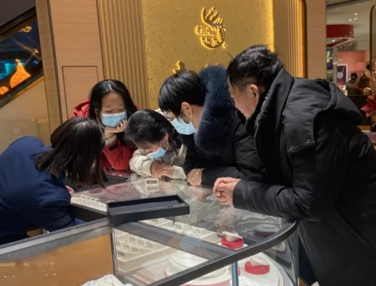 龙年黄金消费持续高涨,相较于去年春节时期的黄金消费,尽管今年黄金价格已经攀升至626元/克,并未浇灭人们的购买热情。春节期间记者穿梭于河南省洛阳市各大黄金售卖柜台发现,各商家门前都是人声鼎沸,前来购买黄金饰品的顾客络绎不绝,有些柜台前甚至排起了长队。