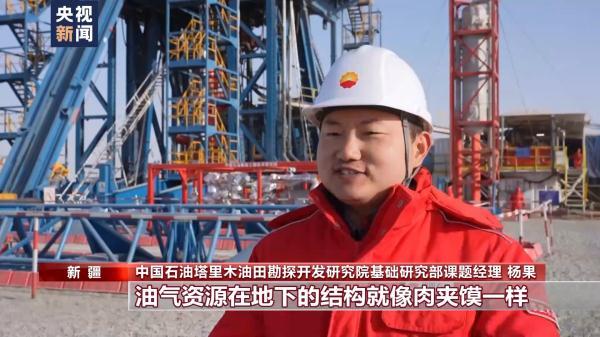 中国石油塔里木油田勘探开发研究院基础研究部课题经理 杨果:油气资源在地下的结构就像肉夹馍,上面是盖层,中间是油气层,下面是生油层。深地塔科1井从2月1日开始钻探到油气盖层,是一个非常好的消息,说明万米深层已具备最基本的油气封盖条件。地下可能封存着非常丰富的油气资源,等待我们去探索。