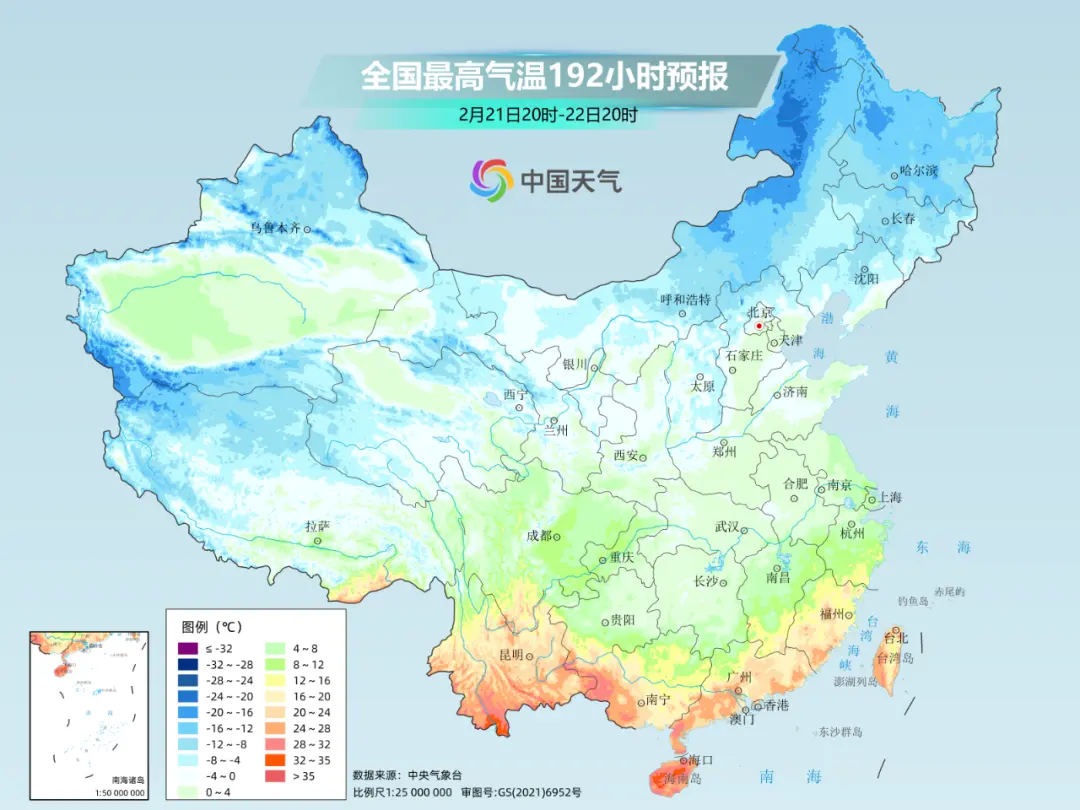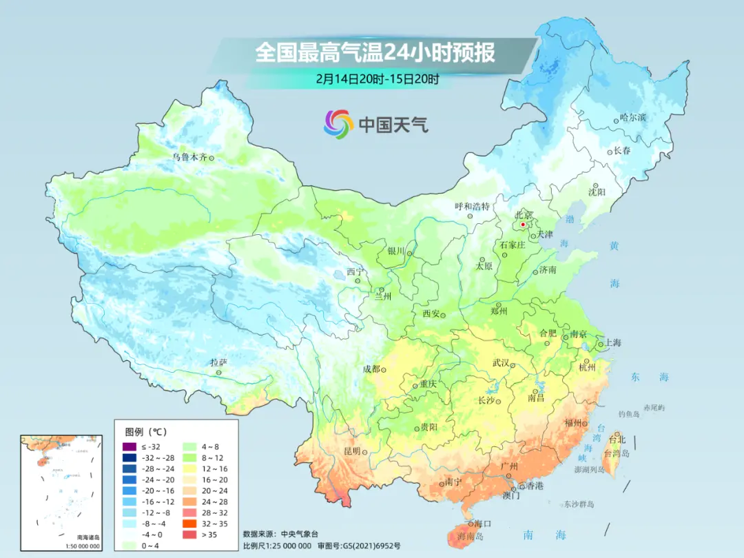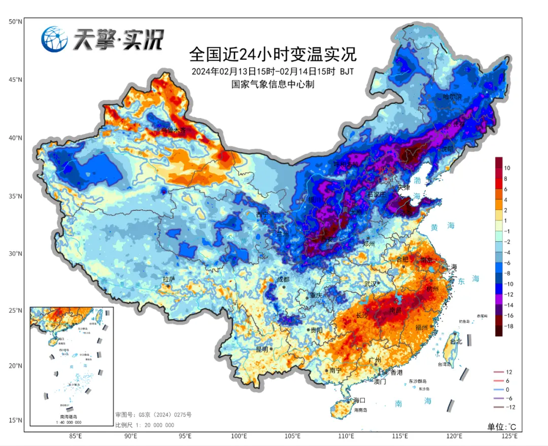 今天南北气温的对比,只是春节假期接下来几天我国大部地区气温走势的演练,冷暖切换将频繁上演!