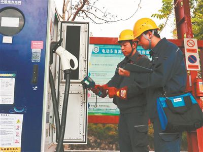 广东电网工作人员在进行充电桩运维工作。