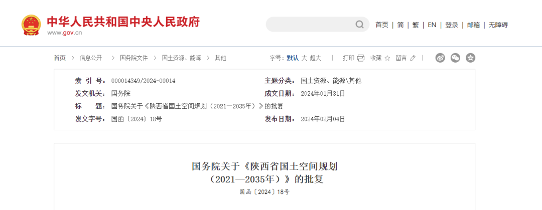 国务院关于《陕西省国土空间规划