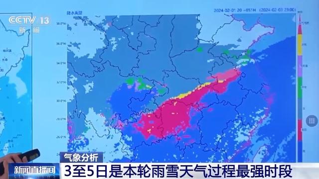 目前,我国中东部正在经历大范围持续雨雪冰冻天气,预计未来三天,随着北方冷空气不断南下与北上暖湿气流交汇,中东部雨雪逐渐发展增强,是本轮雨雪天气过程最强时段,江汉至黄淮一带将遭遇暴雪到大暴雪;西南地区东部、江南北部、华南北部也普遍将有中到大雨,局地暴雪。由于大气不稳定能量较高,上述地区还可能出现雷打雪、雷电、短时强降水等强对流天气。