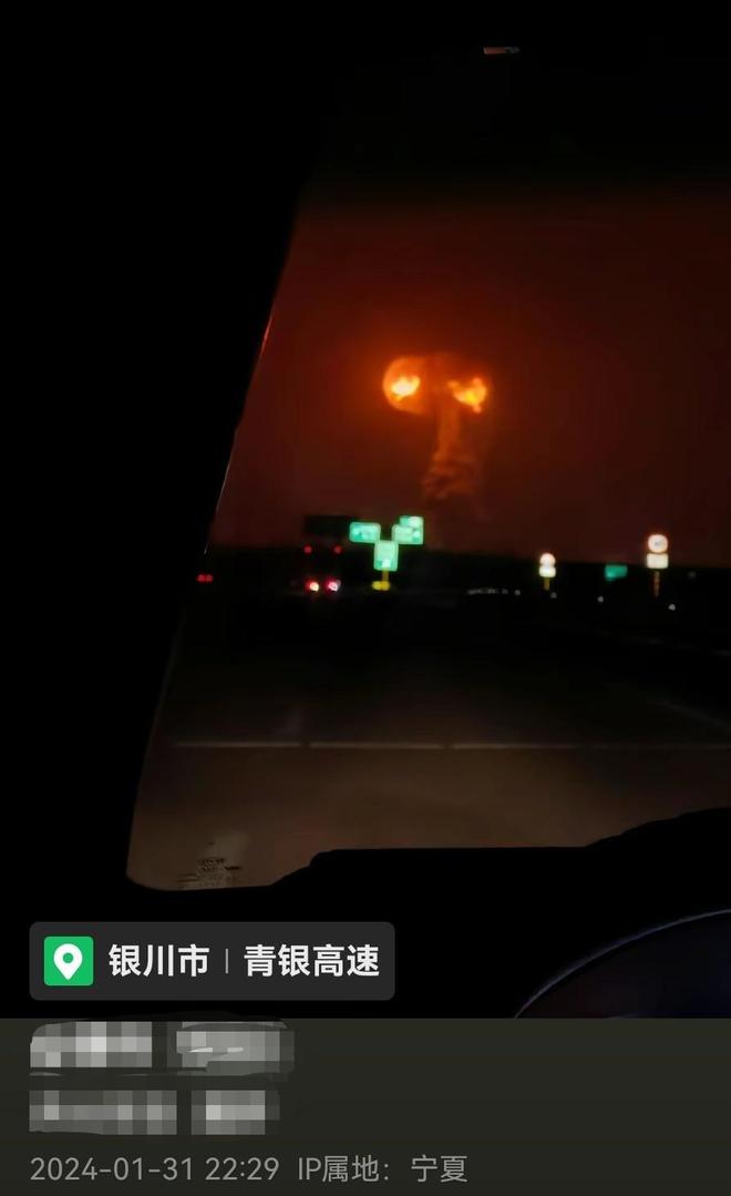 一名目击者介绍,昨晚9点多,他们在青银高速宁东往银川方向行驶,刚上高速十分钟左右,看到远处冒出蘑菇云。当时他们距离事发地点还有一公里以上的距离,在车上未听到爆炸声。