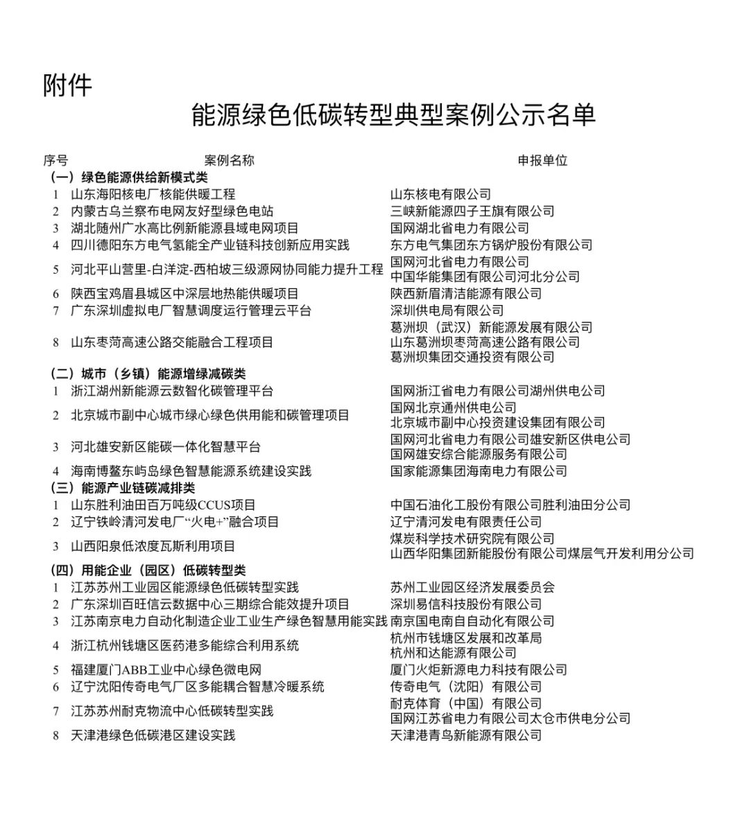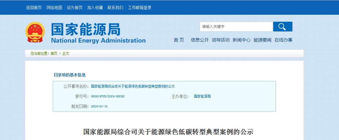 国家能源局综合司关于能源绿色低碳转型典型案例的公示
