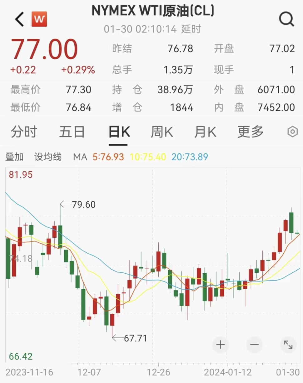 “市场对中东局势保持谨慎观点,红海事件带来的地缘溢价仍然存在,这也支撑原油价格震荡偏强运行。受此影响,国内参考原油变化率上行。”王芦青表示。