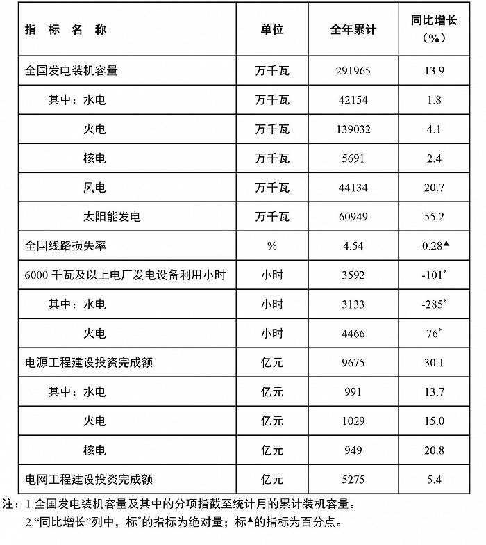 除光伏装机外,国家能源局数据显示,2023年,全国6000千瓦及以上电厂发电设备累计平均利用3592小时,比上年同期减少101小时。主要发电企业电源工程完成投资9675亿元,同比增长30.1%;电网工程完成投资5275亿元,同比增长5.4%。