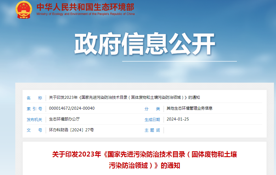 关于印发2023年《国家先进污染防治技术目录(固体废物和土壤污染防治领域)》的通知