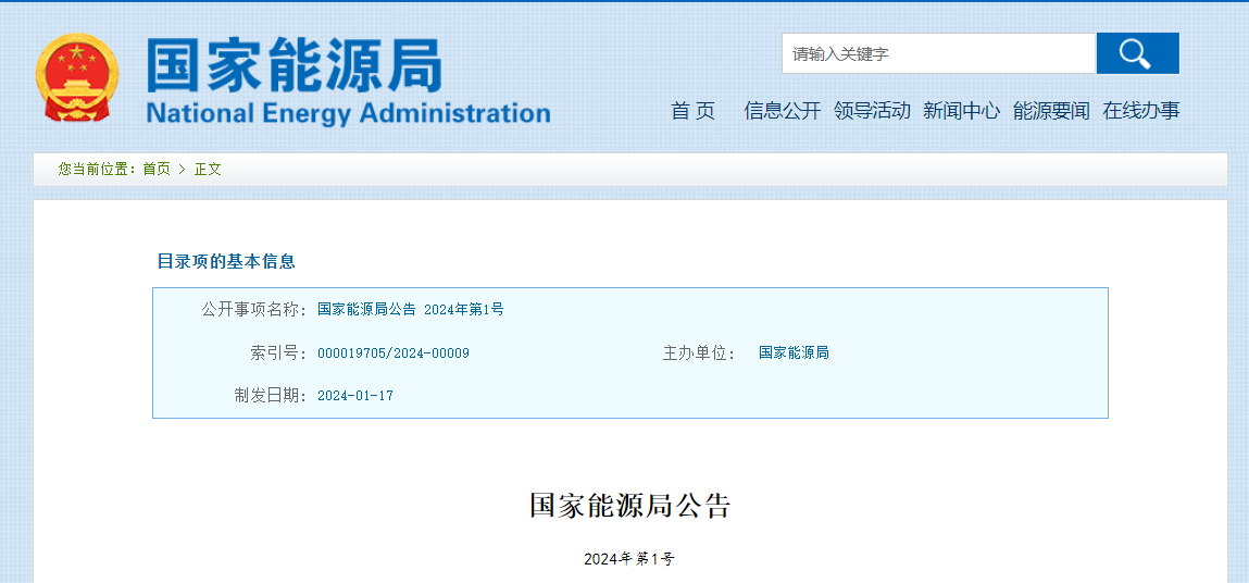 国家能源局公告