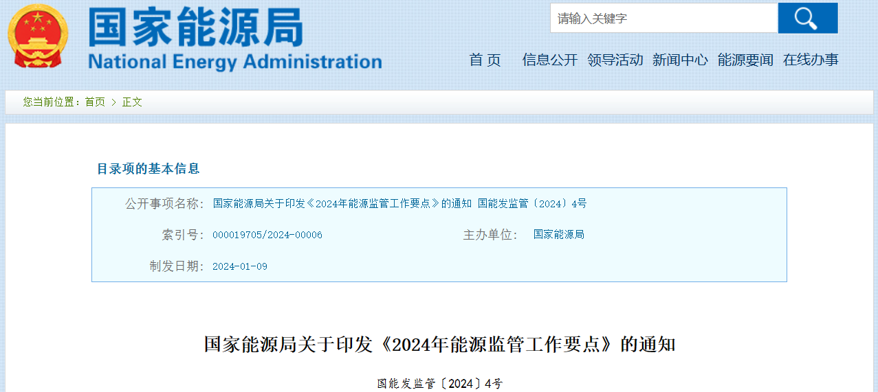 1月22日,国家能源局发布《2024年能源监管工作要点》。