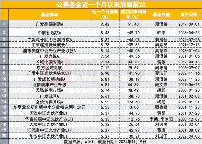 截至1月19日,近一个月涨幅榜中,重仓在光伏、新能源的基金占据前20中的17个席位,仅天弘越南市场、金信消费升级和华夏北交所创新中小企业精选两年定开3只为非新能源持仓。