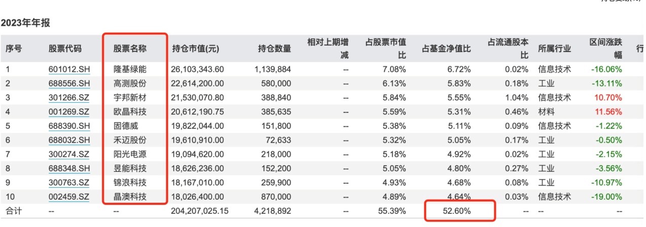 在去年四季报中,郑澄然表示,基金重仓的光伏、储能板块表现仍然较差,市场更多的担忧仍然是产能过剩,市场认为2024年国内需求受消纳影响会下滑,海外需求受欧洲库存影响仍然不乐观。实际从产业发展规律和供需曲线判断,2024年一季度末有很大可能会出现拐点,后续某个季度很可能看到产业量价齐升的边际走势。当前板块预期低、估值低、机构持仓低,仍然坚信板块当前有较高的配置价值。