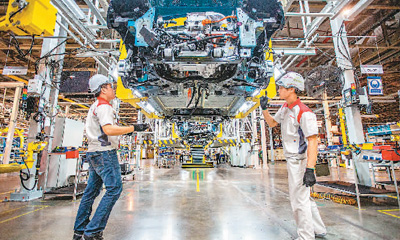 工人在位于泰国罗勇的长城新能源汽车制造基地生产车间工作。