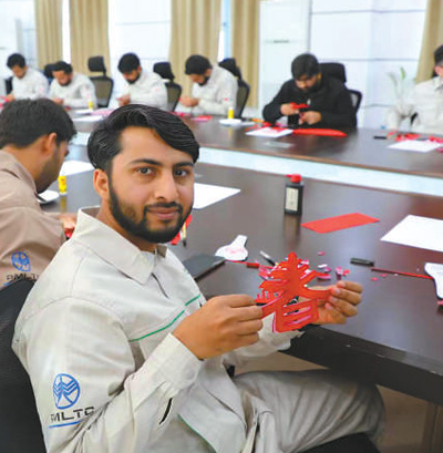 2023年春节期间,巴基斯坦默蒂亚里—拉合尔直流输电项目中巴方员工在值守工作之余共度春节。