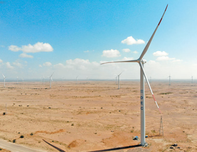由中国江西国际经济技术合作公司建设的肯尼亚加里萨光伏发电站,装机容量达50兆瓦,是迄今东非地区规模最大的光伏电站。在埃塞俄比亚,从高原地带的阿达马风电场,到沙漠地区的阿伊萨风电站(见图,金鑫摄),清洁能源被源源不断地输送到千家万户。
