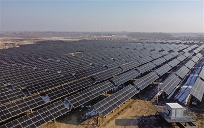 河北秦皇岛昌黎县荒佃庄镇附近的一处光伏发电场(无人机照片)。 新华社记者 杨世尧 摄