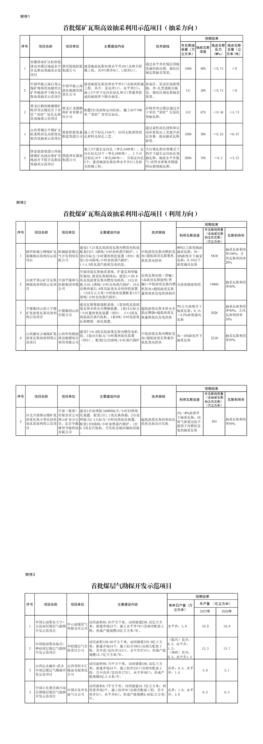 1.首批煤矿瓦斯高效抽采利用示范项目(抽采方向)