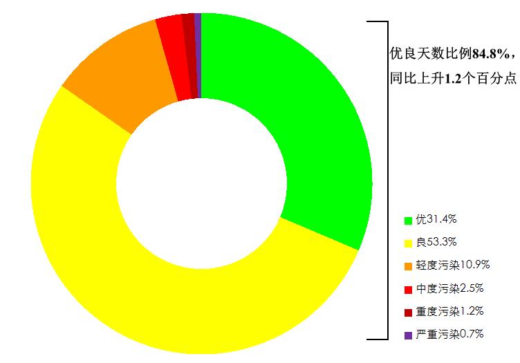 1—3月,全国339个地级及以上城市平均空气质量优良天数比例为84.8%,同比上升1.2个百分点;平均重度及以上污染天数比例为1.8%,同比下降0.6个百分点。由沙尘天气导致的平均超标天数比例为3.5%,其中重度及以上污染天数比例为0.9%。